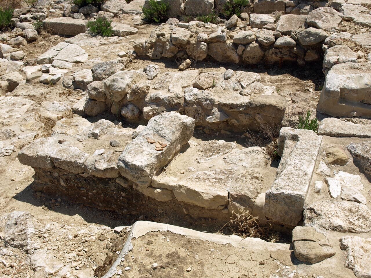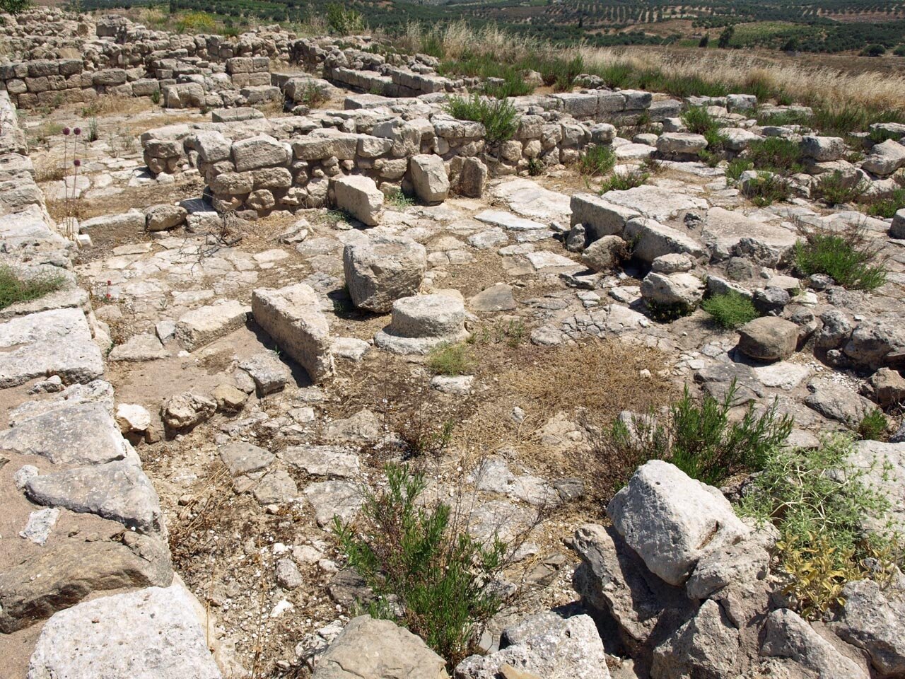 The “Palace” at Galatas was only discovered and excavated in the early 1990s. The site is located 30 kilometres south of Heraklion, near the villages of Galatas and Arkalochori. From the site there are fine views of the surrounding countryside. The site is of particular importance as it contains a palace built only in one period, the neopalatial. Other palace sites contain remains from several palaces built at different times which often involved the levelling off and destruction of layers by the builders of the later palace and makes it more difficult to understand the architecture that remains.